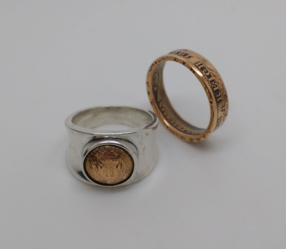 1913 German gold 20 marks coin ring set
