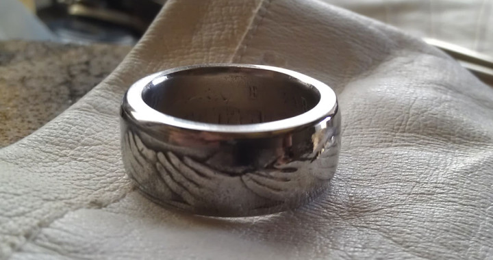 A few years back I picked up ten or more 1973 50 pence pieces from a local market. When I lived in Adelaide I went to a local coin shop and noticed in the window display a couple of proof sets of this coin (including a nice case). I thought right away it would make a very nice coin ring based on the 9 hands design. Well, I made it but I don’t think I will attempt to make another one ever again. Why? This coin is made out copper-nickel 2.3mm in thickness. Most of the time I work with 0.9 to 1.3mm thickness for copper, copper-nickel etc. Silver can be a bit thicker as it is a lot softer and easier to work with. Long story short, I broke two of my hand tools but I was determined to finish this coin ring. Everything was made by my hands using hand tools – no power tools used. I don’t know why I didn’t stop crafting this coin ring in an early stage after spending a loooong time trying to punch a hole through the centre of this coin ???