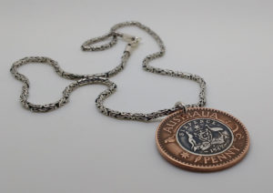 Australian copper penny and Australian silver six pence pendant and silver chain
