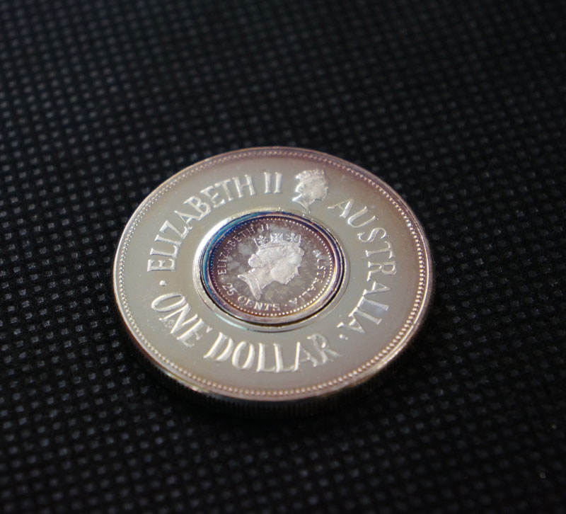 AUSTRALIA 1988 SILVER HOLEY DOLLAR and DUMP coin ring