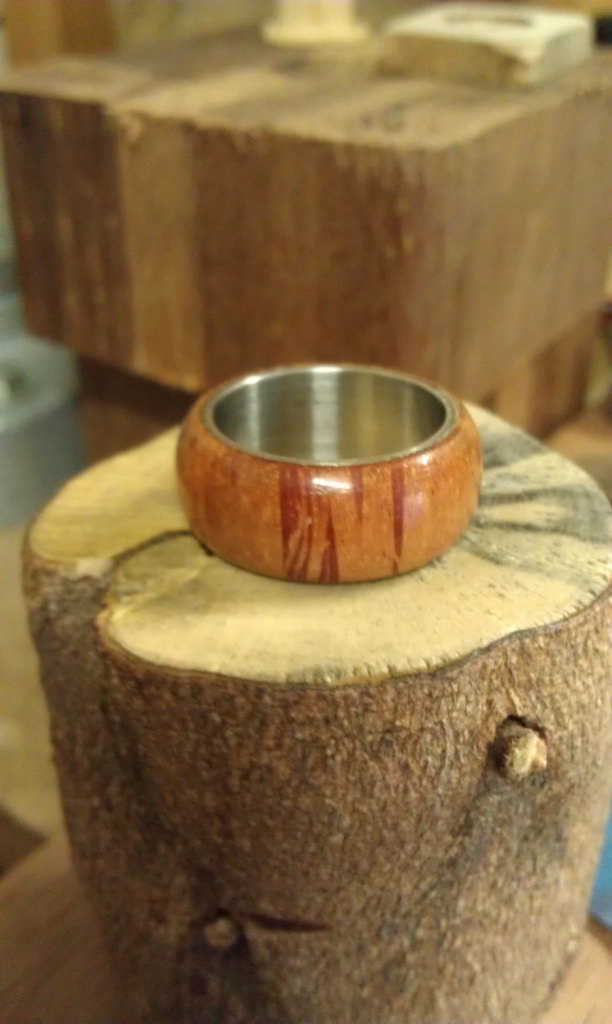 Tiger wood and stainless steel finger ring by Coin Carnival