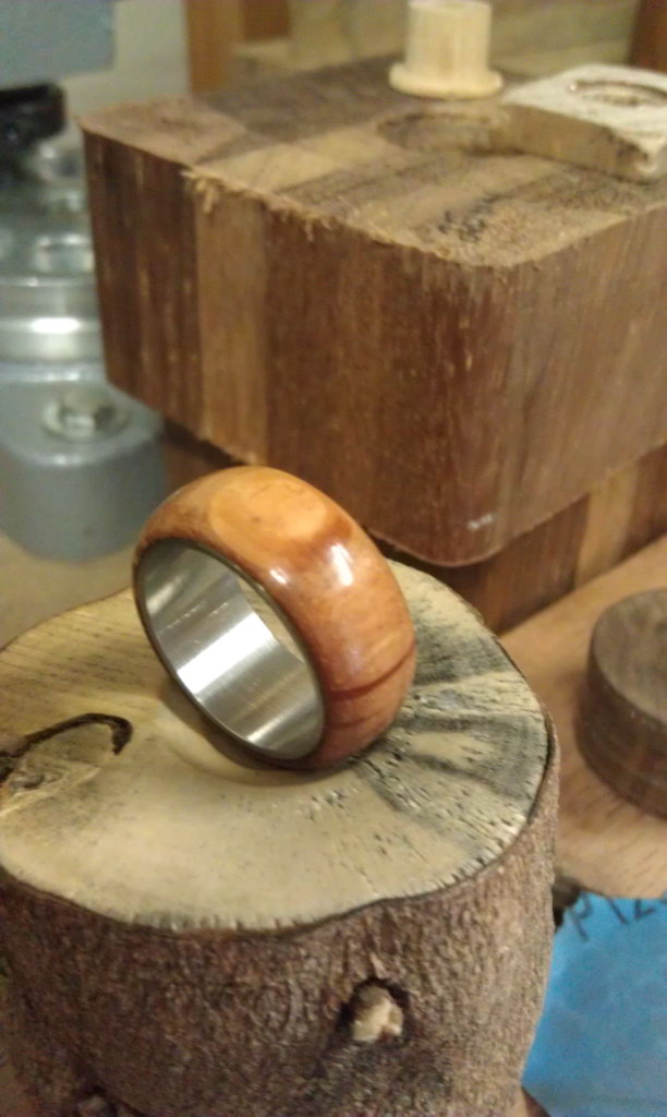Tiger wood and stainless steel finger ring by Coin Carnival