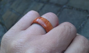 Tiger wood and stainless steel finger ring by Coin Carnival